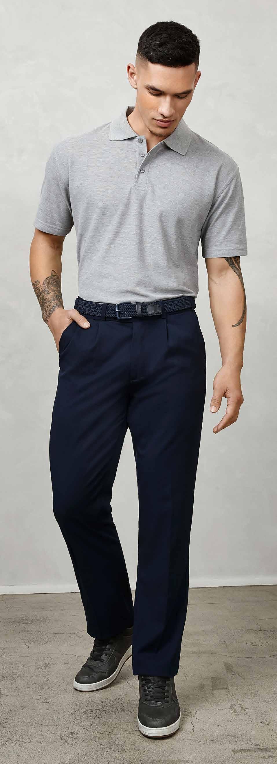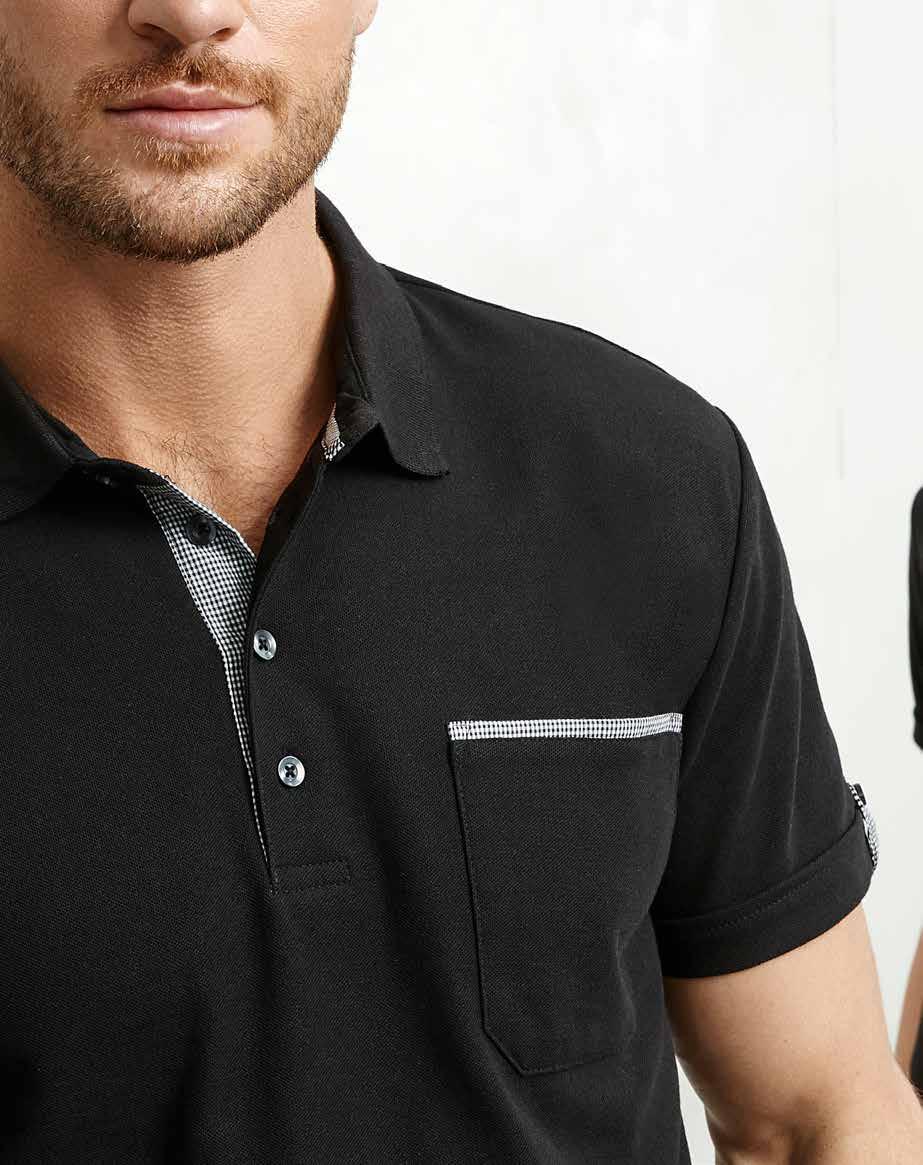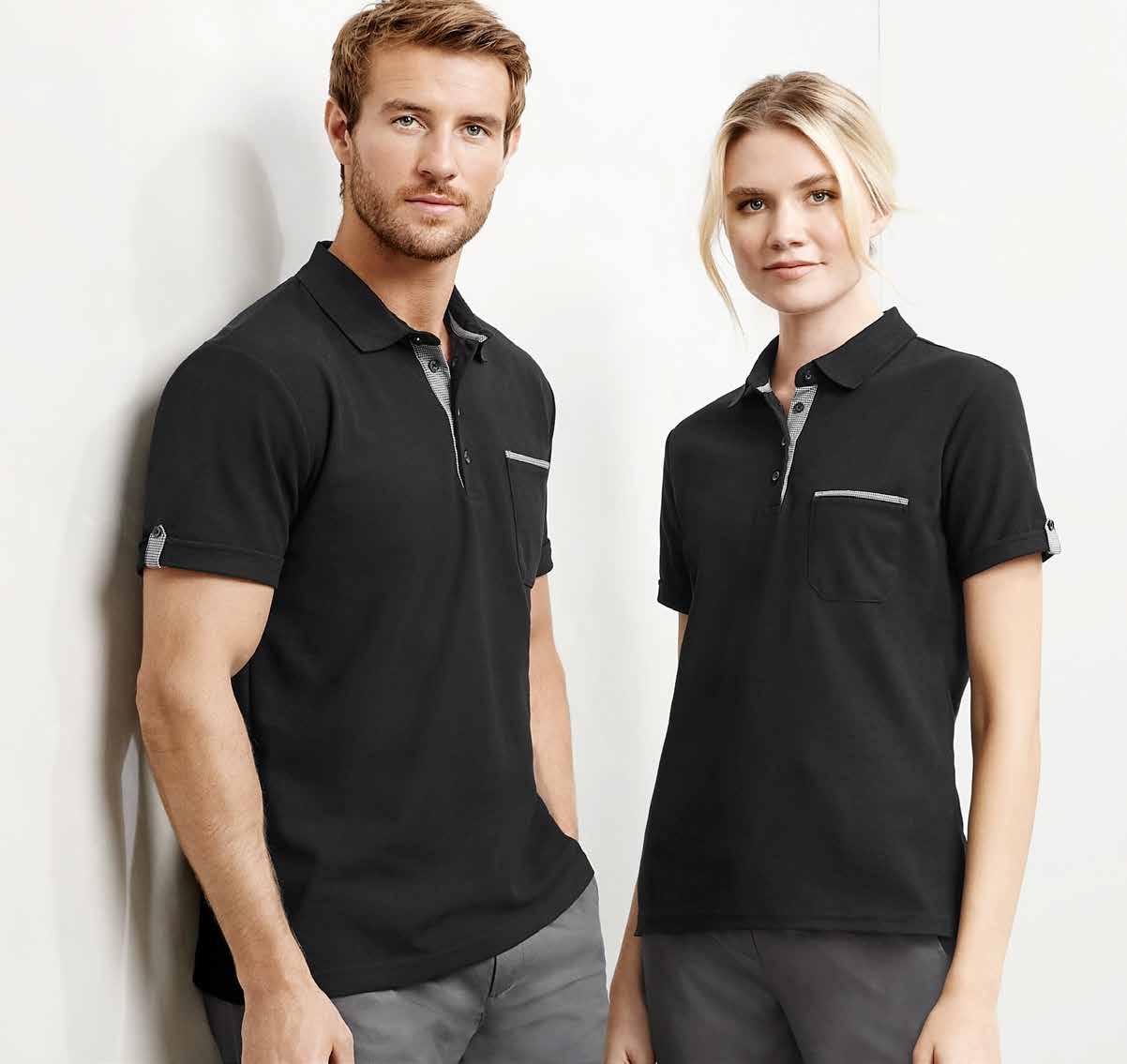 CARACTÉRISTIQUES Tissu respirant, évacuant la sueur, vous permettant d’avoir votre meilleure allure tout au long de la journée • Entretien facile, anti-accroc offrant une performance durable • Col de tricot plat classique et patte à boutons • Le style hommes comporte une poche détachée