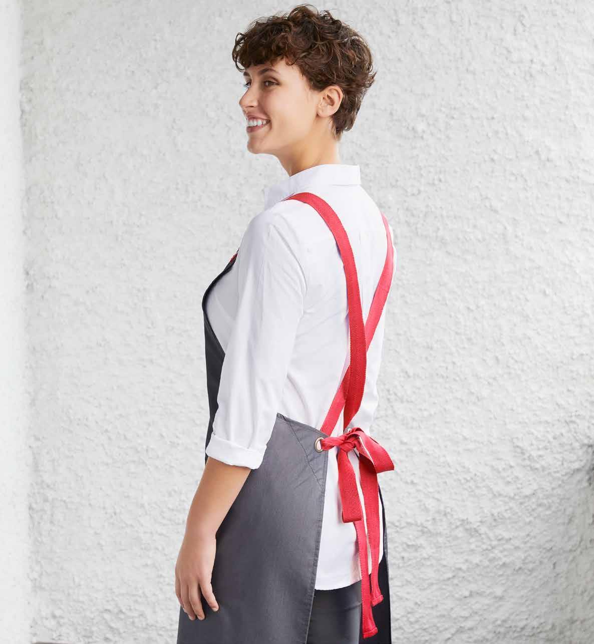 CARACTÉRISTIQUES ablier à bavette avec courroie ajustable autour du cou de même tissu