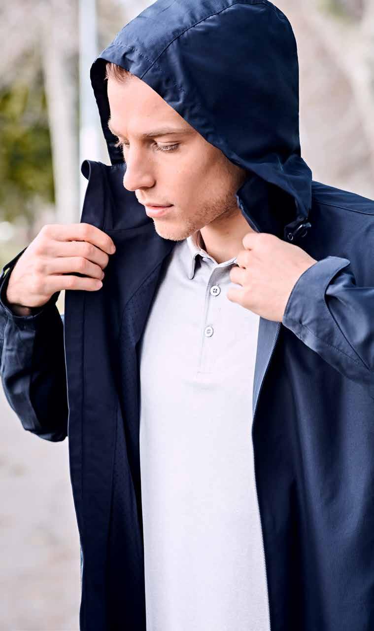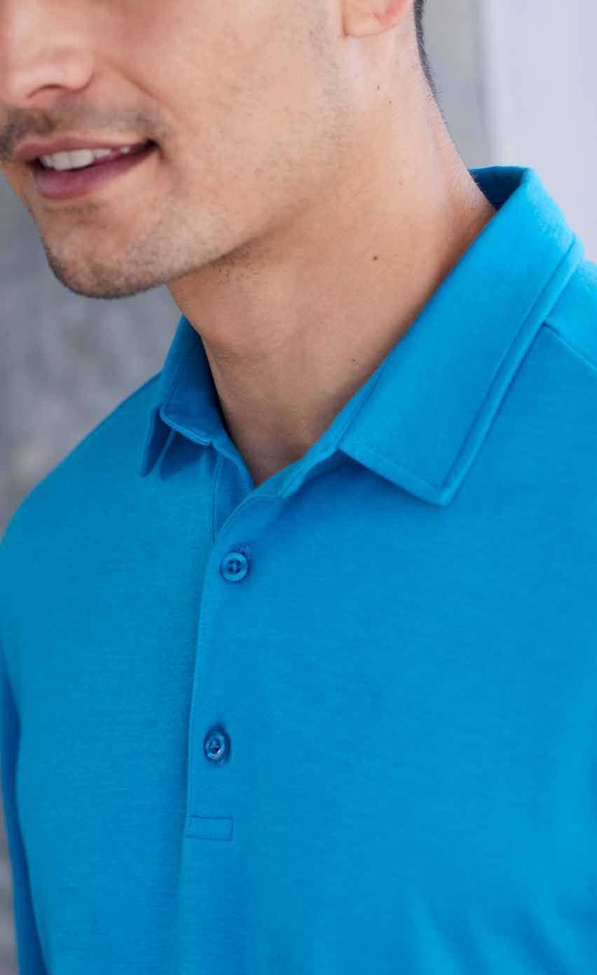 CARACTÉRISTIQUES Maille sportive respirante BIZ COOL MC gardant au frais et au sec • Col de tricot côtelé avec boutons nacrés • Longueur allongée permettant de le porter à l’extérieur ou l’intérieur • Poche détachée incluse dans le modèle Hommes