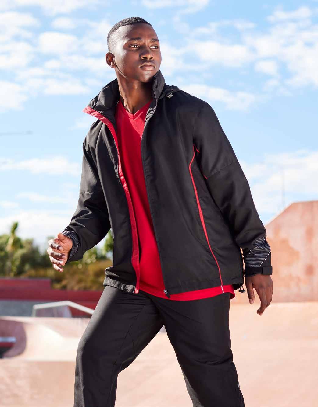 CARACTÉRISTIQUES Garnitures réfléchissantes argent vous permettant de vous démarquer • Style dynamique avec contraste de couleurs frappant • Panneaux de mailles offrant plus de ventilation où vous en avez surtout besoin • Col à rayure tricoté • Comporte une poche détachée