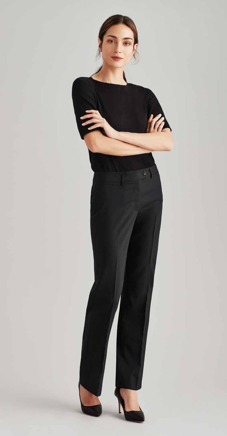 Taille mi-hauteur, semiajustée au niveau des hanches et des cuisses avec une jambe plus étroite.