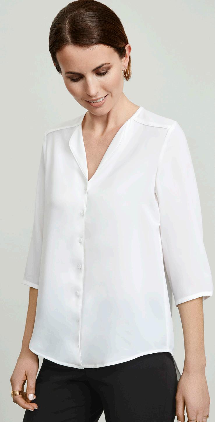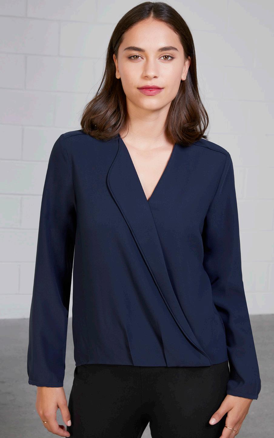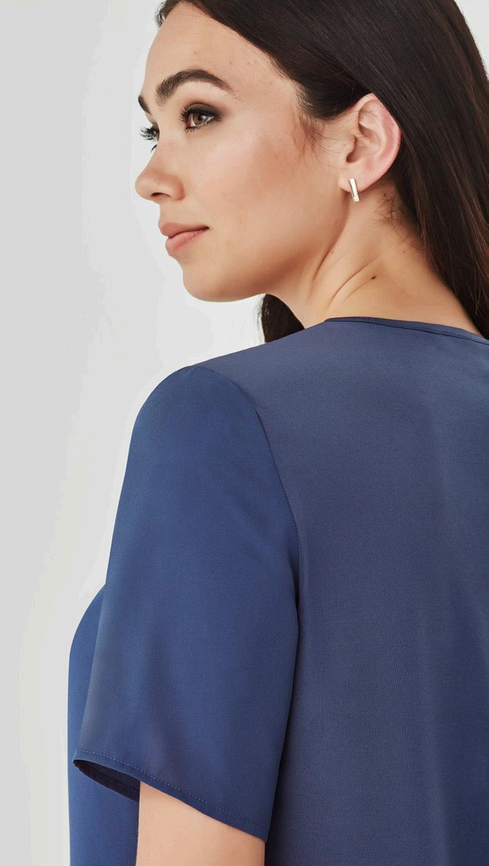 FEATURES Soft flowing luxurious feel • Gently draped neckline creates an elegant appearance • Shaped through the torso for a flattering silhouette • Can be worn tucked in or out