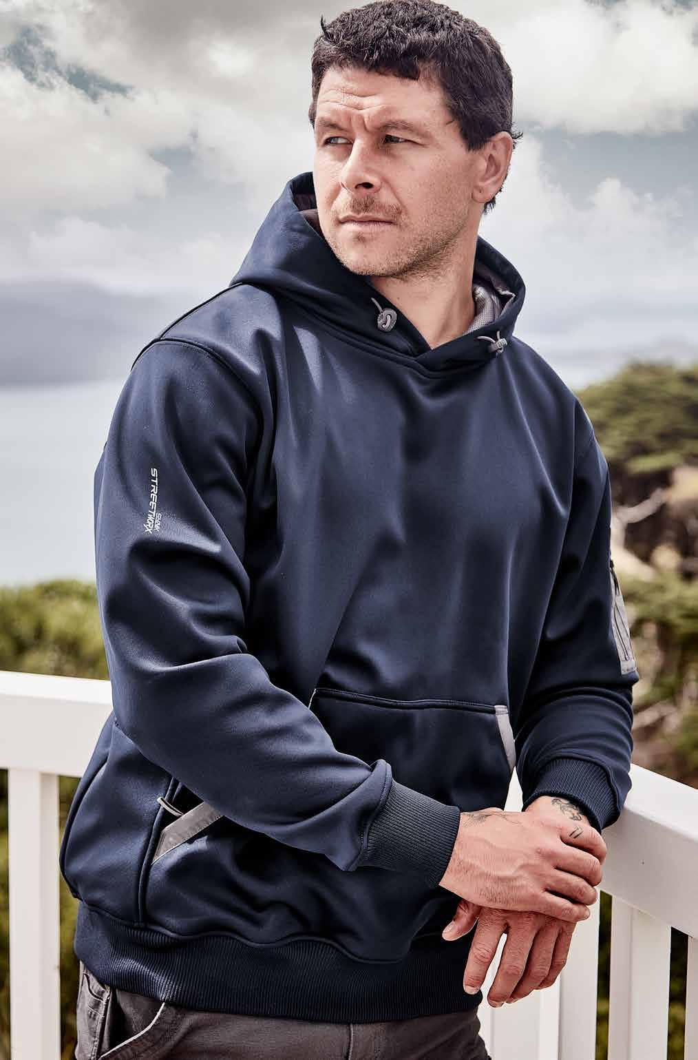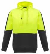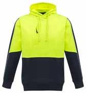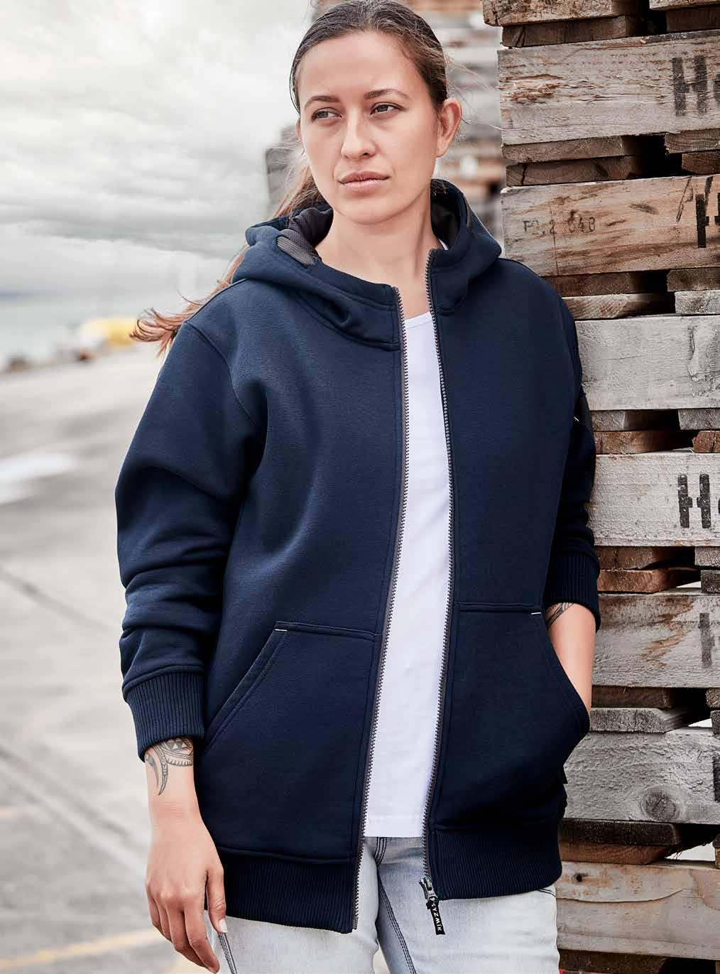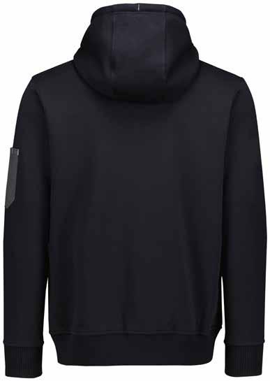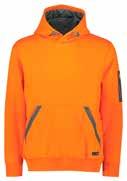 Heavy weight fabric with soft brushed lining for comfort and warmth Extra heavy weight ribbed knit on hem and cuffs Full zip through opening Woven arm pen pocket in contrast fabric Safety drawstring to prevent catching Two angled side hip pockets with quick close tape closure for mobile phone and tools Two kangaroo pockets to keep your hands warm even on the coldest days Mesh hood lining Reinforced at all key stress points with bar tacks