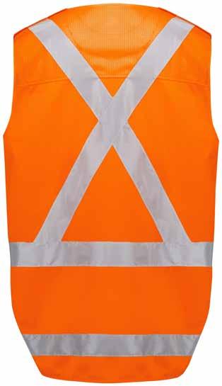 Shoulder and side openings with quick close tape Quick close tape on side hips will break open in case of vest getting caught Breathable mesh panel across front and rear shoulders Large pocket with quick close fastener Radio loop Clear ID Pocket on chest Longer tail