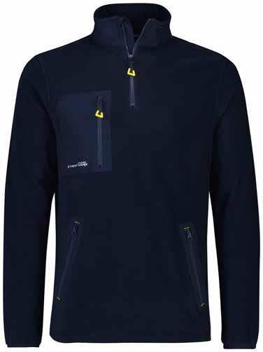 Premium heavy weight 9.4 oz/yd² brushed fleece Soft fleece for ultimate comfort on cold days Half zip construction Two hip pockets with zips so your tools, keys or other valuables never fall out Woven double pen partition pocket on the arm Chin guard for increased comfort