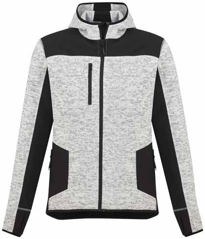 Thumb holes in the sleeve cuffs are combined with soft shell reinforcement and soft polyester wadding to provide built in glove 2 Side hip zip pockets and single chest pocket