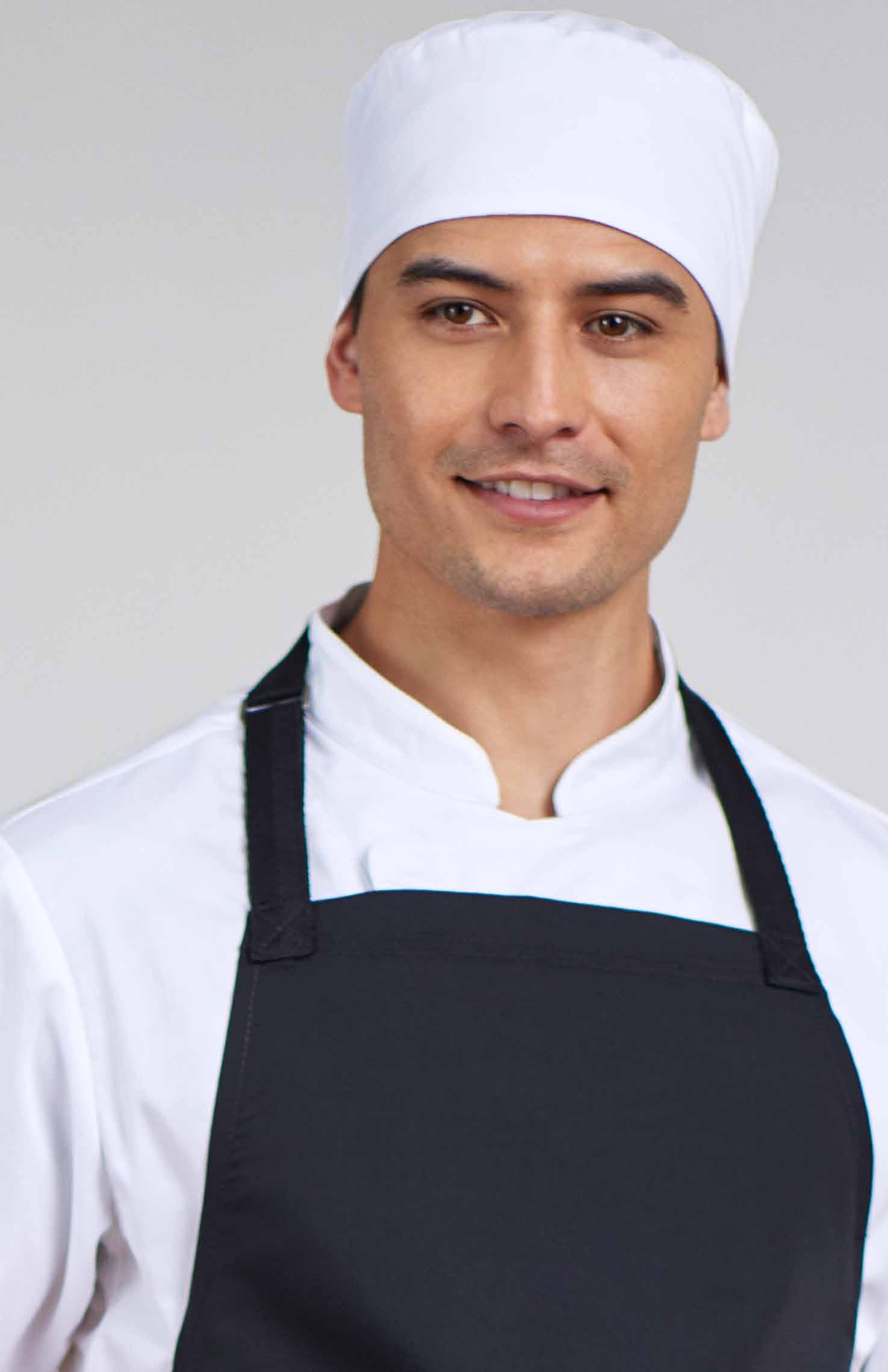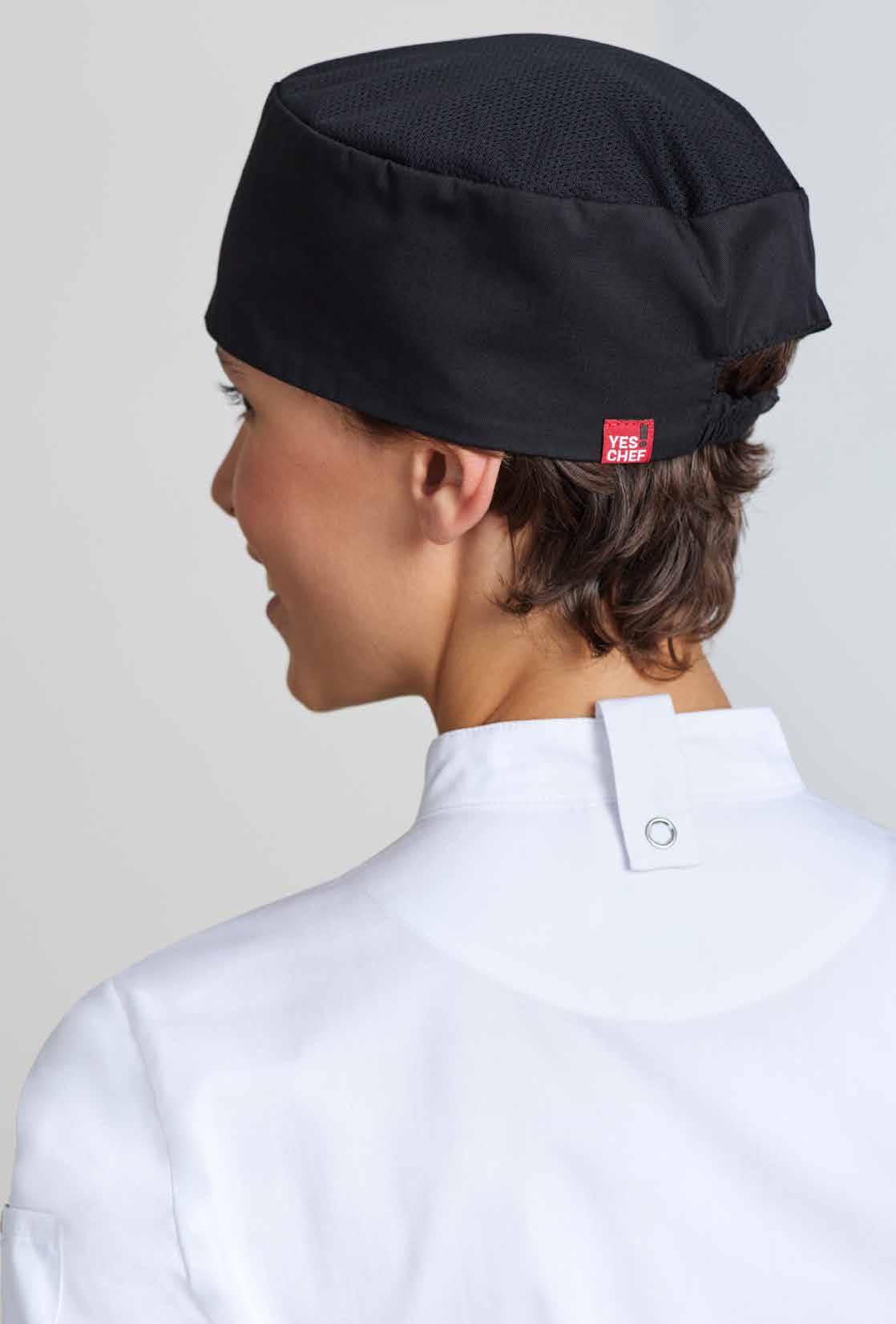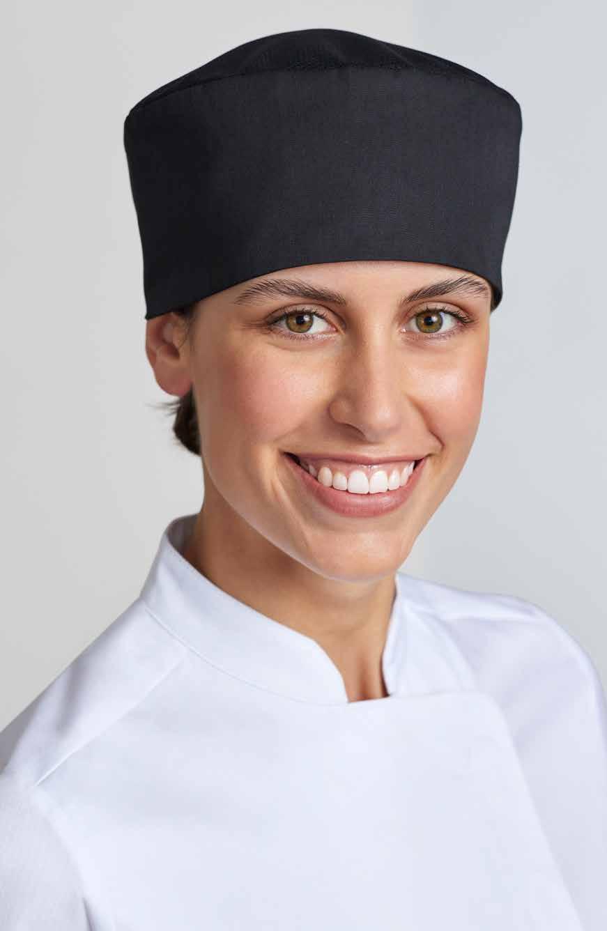The go-to hat for many chefs. This classic flat top style has an elasticated back for a comfortable all day fit.