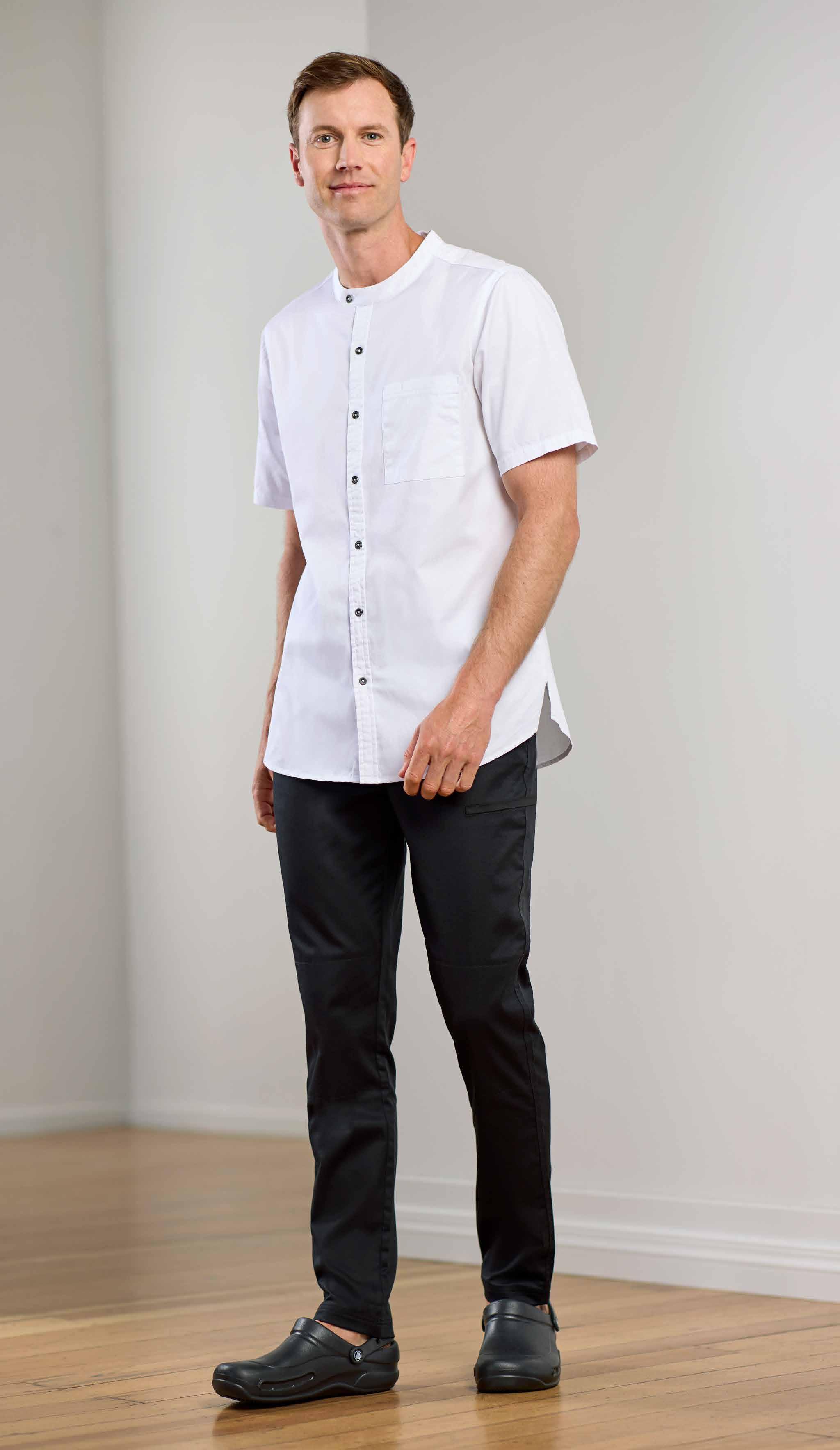 From front of house to back, this 100% cotton, functional chef shirt works hard while you look cucumber-cool in this effortless style.