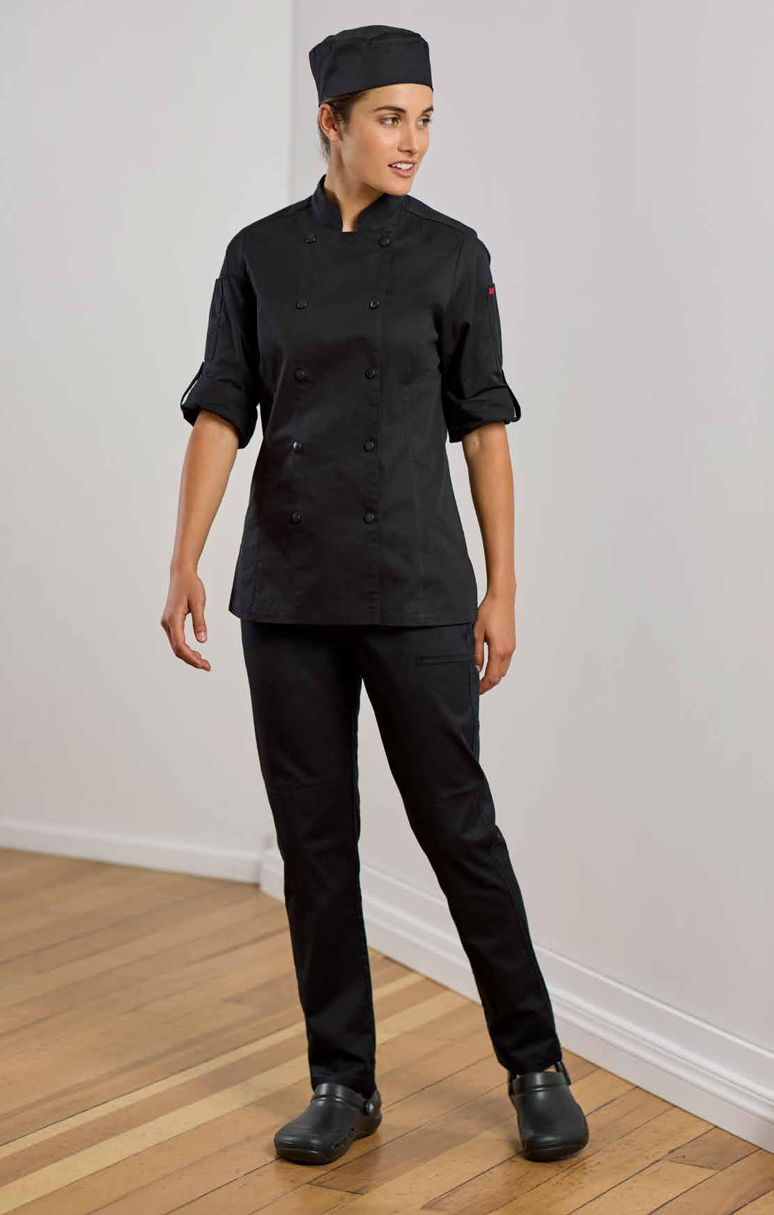 A tapered fit pant in a lightweight stretch fabric these pants are a perfect addition to any chef’s attire. Offering a high level of comfort and functionality with multiple pockets including one at the thigh.