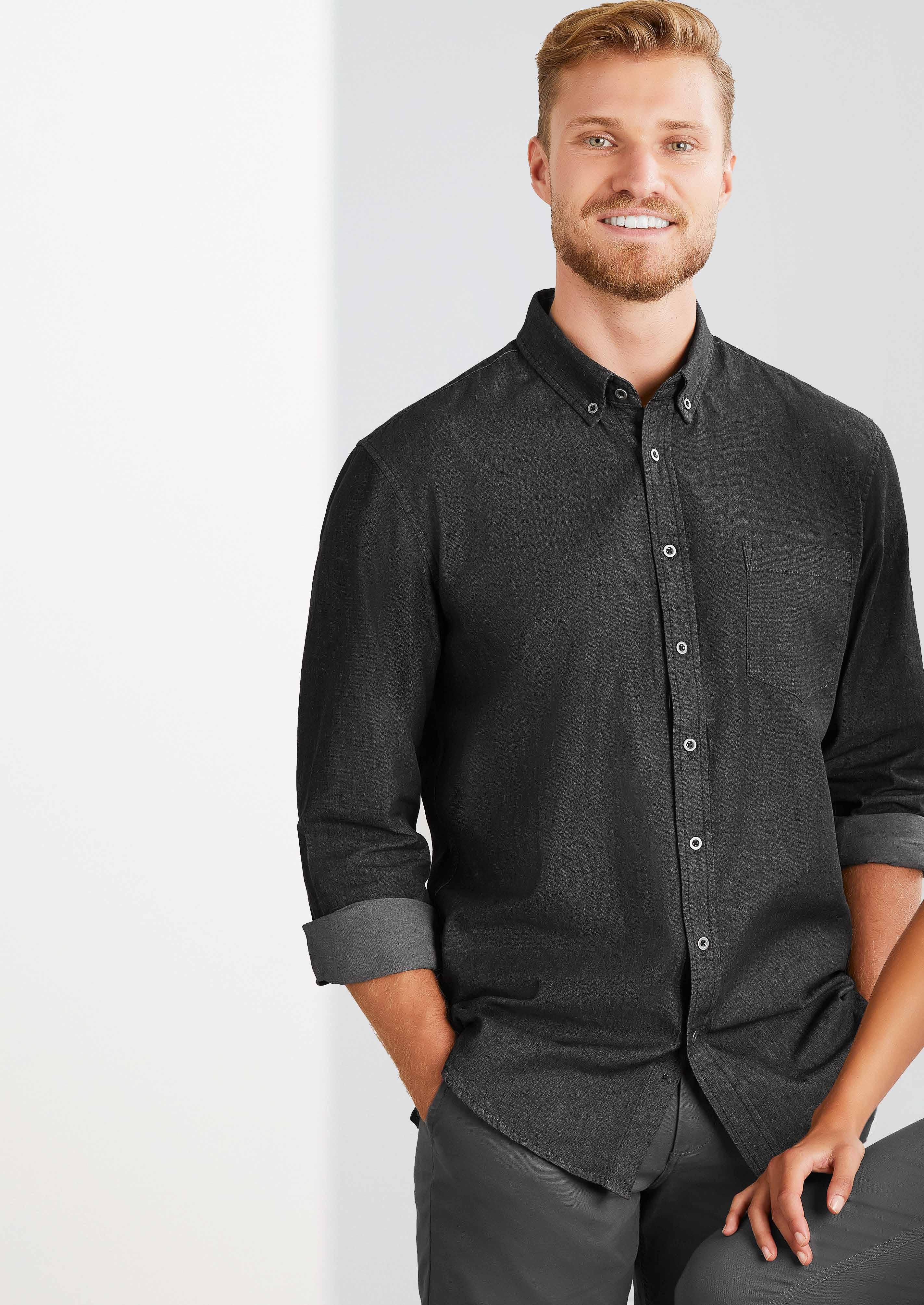 - Long sleeve style features roll-up sleeve function with inside tab and button