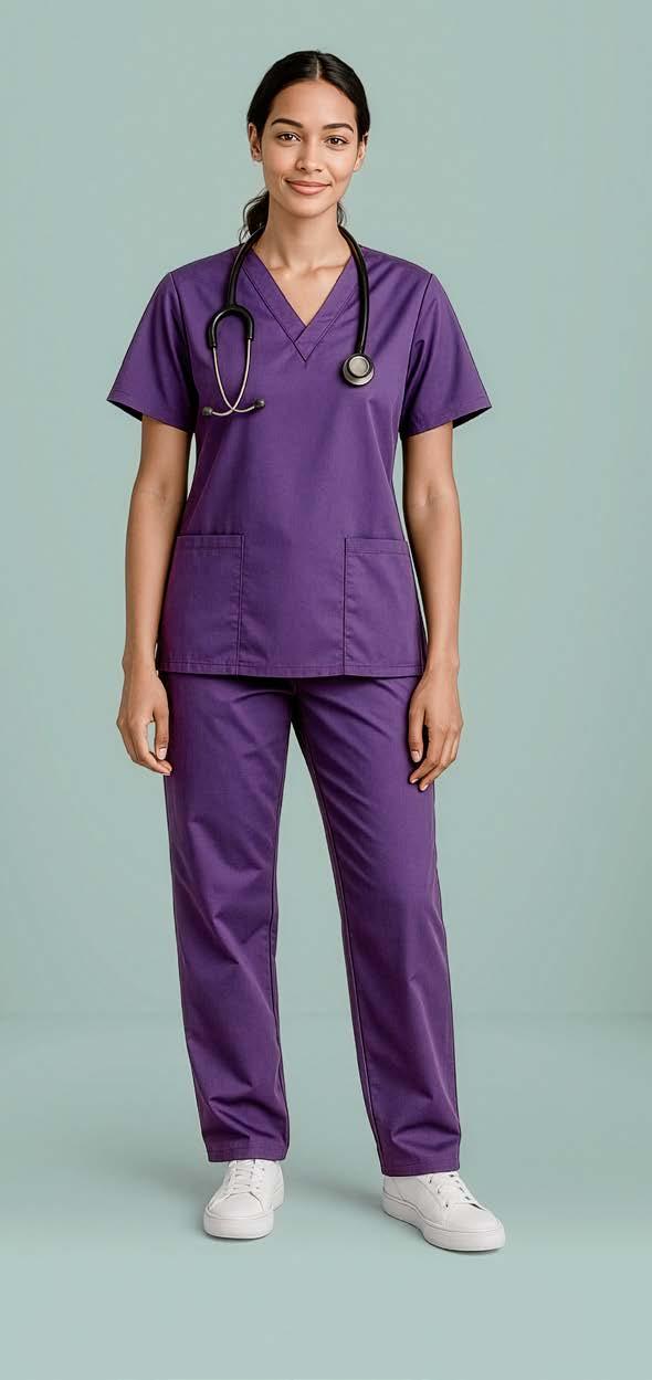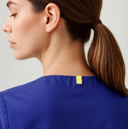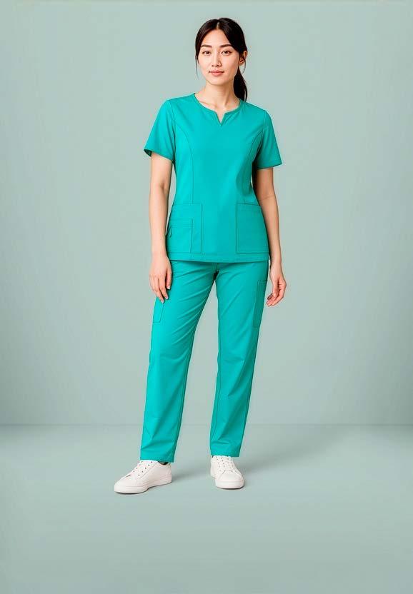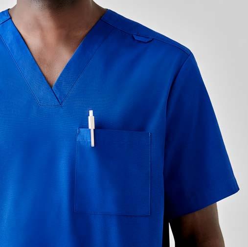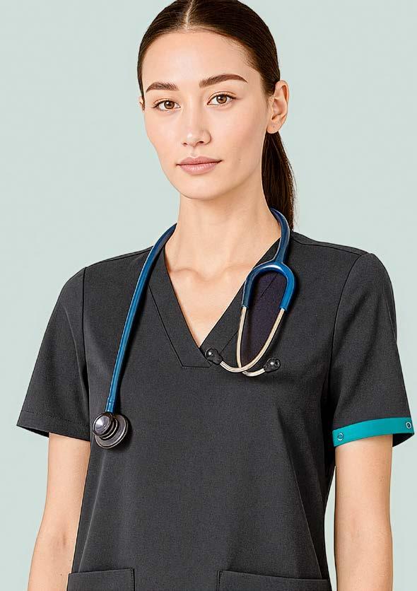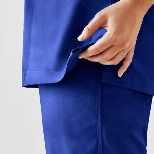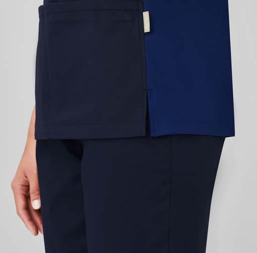 Colour-coding scrubs for different departments can be helpful markers for your clientele. Our Avery scrubs have colourful sleeve identifiers. See Avery Scrubs on page 10