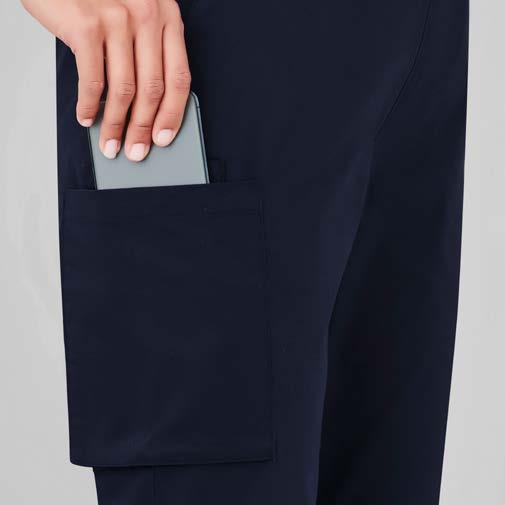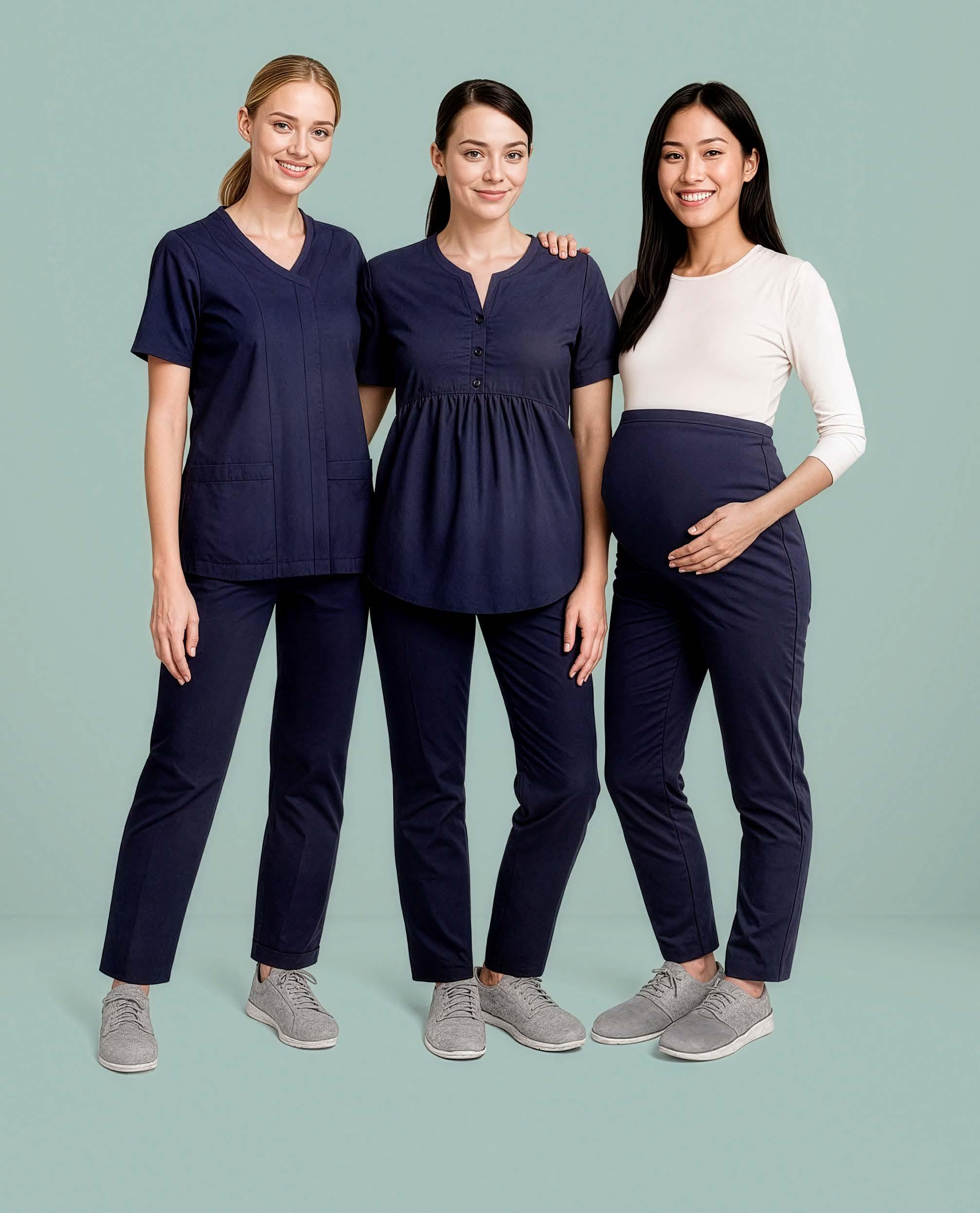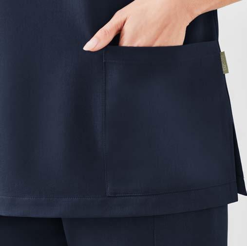 Riley fabric with added antibacterial protection. Available in Womens Parks zip front top and Rose maternity tunic and pant. 52% Cotton 45% Polyester 3% Elastane with Silverplus ® Page 12