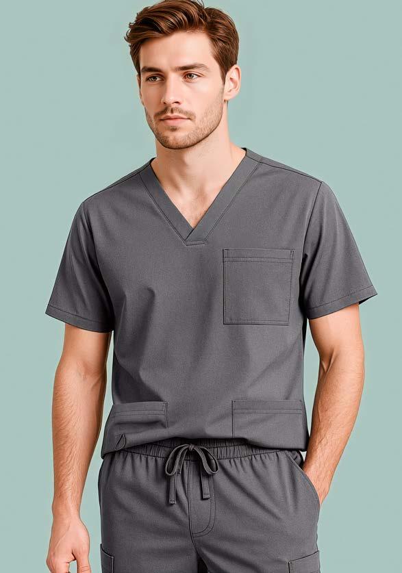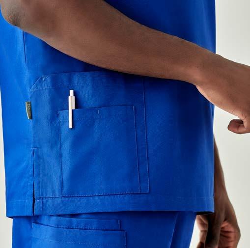 Stylish, modern scrubs with antibacterial stretch panels. Mens and Womens scrubs available in multiple fits and styles. 52% Cotton 45% Polyester 3% Elastane. Page 11