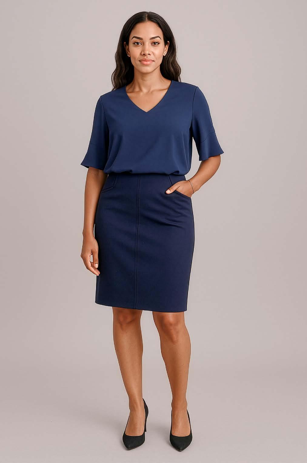 Sydney is designed to sit loosely on the body, featuring a breezy Georgette front and sleeves, with a stretch jersey back.