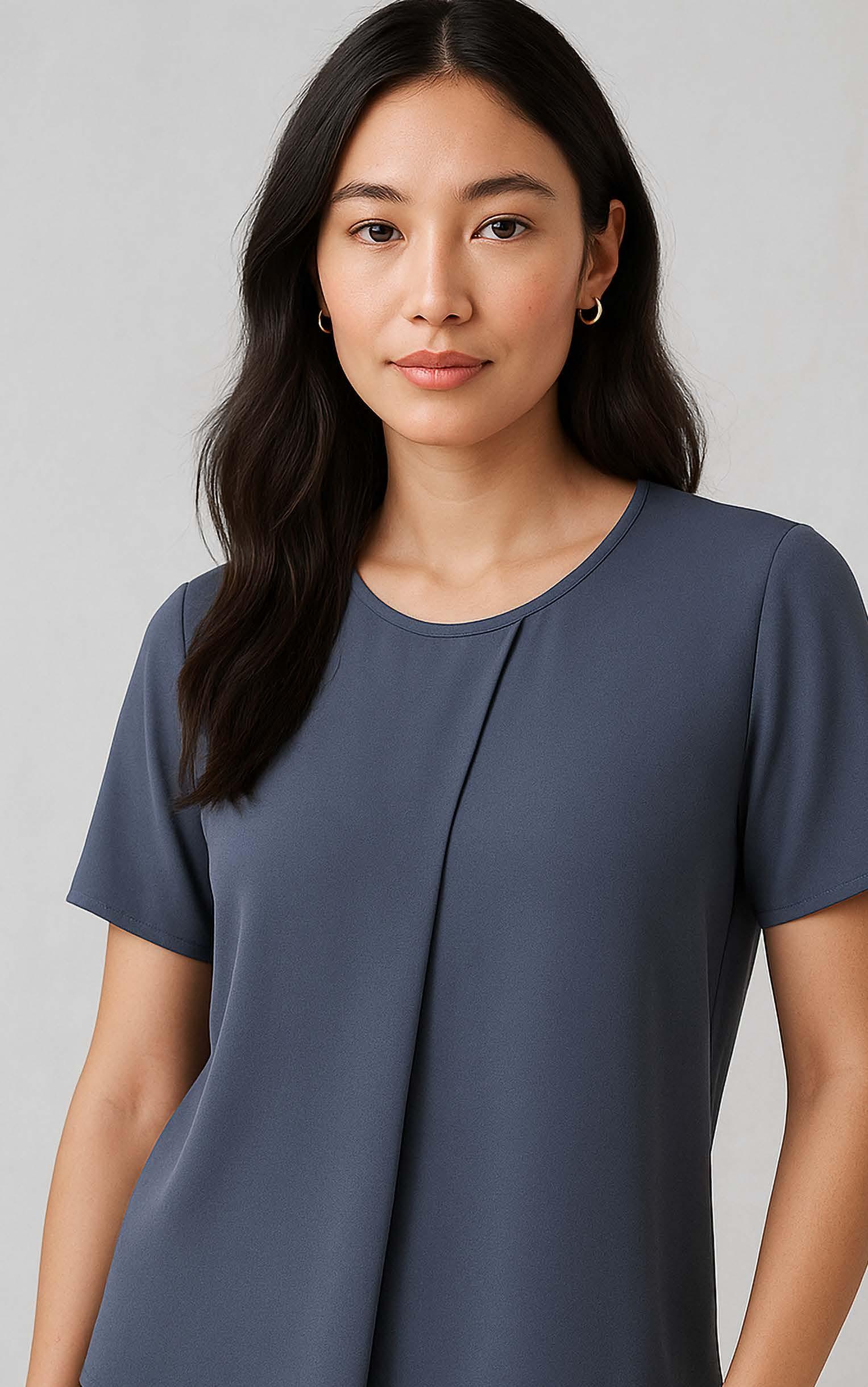 A lightweight fabric with high drape and soft hand feel. Easy-care and durable, the Juliette blouse also features an inverted back pleat tuck.