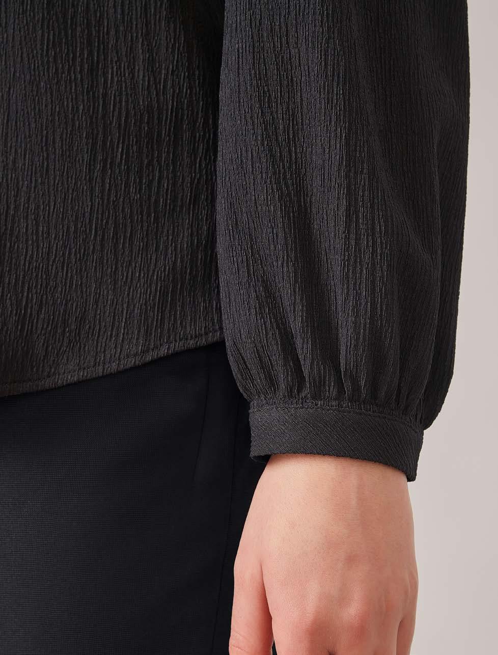 Made from textured stretch knit fabric, featuring soft voluminous sleeves, this piece will elevate your everyday look. Can be styled tucked in or untucked with trousers or your favourite skirt for a professional outfit.