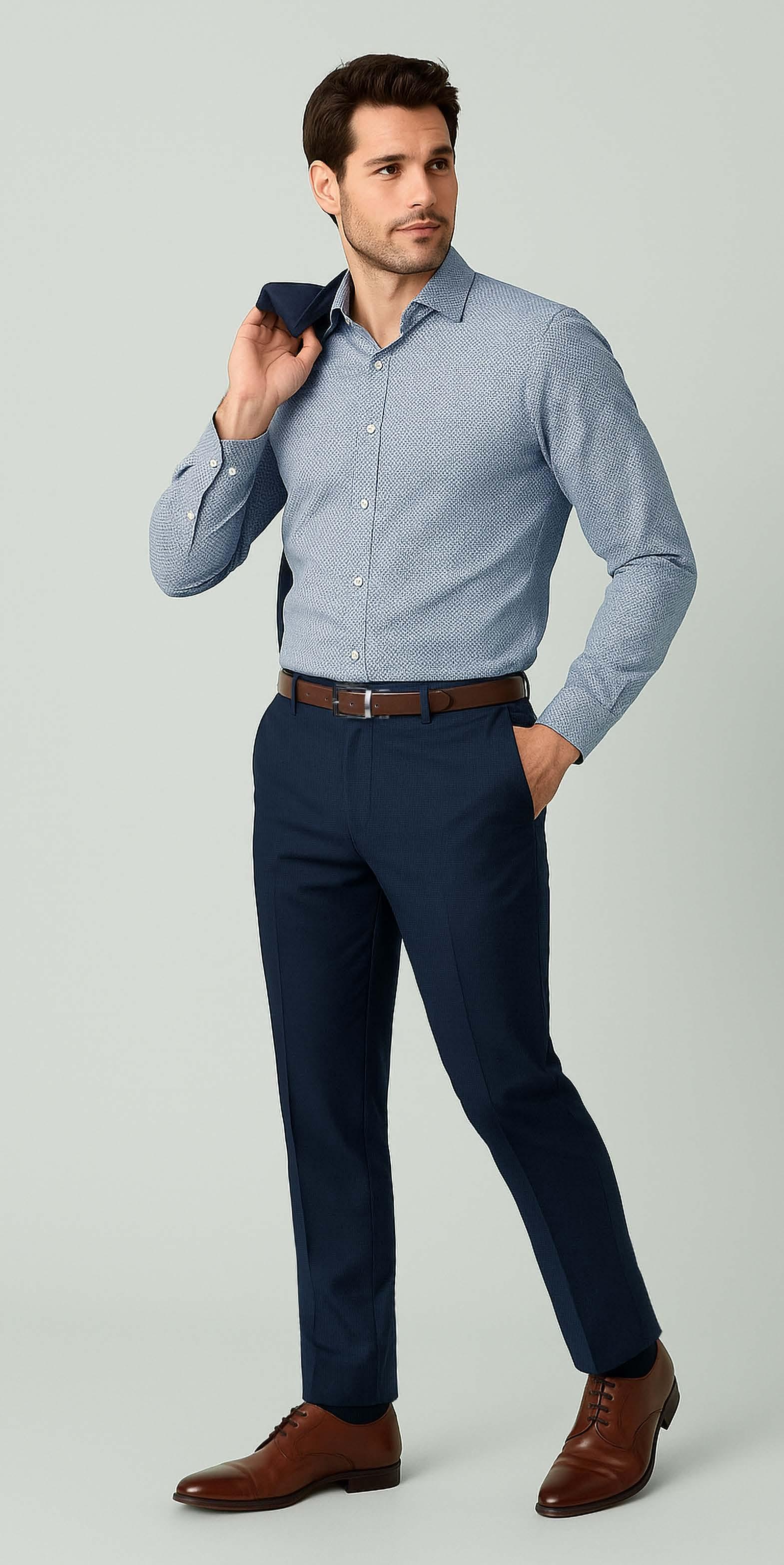 Premium wool blend suiting with polyester for durability. With the added stretch and comfort of elastane.