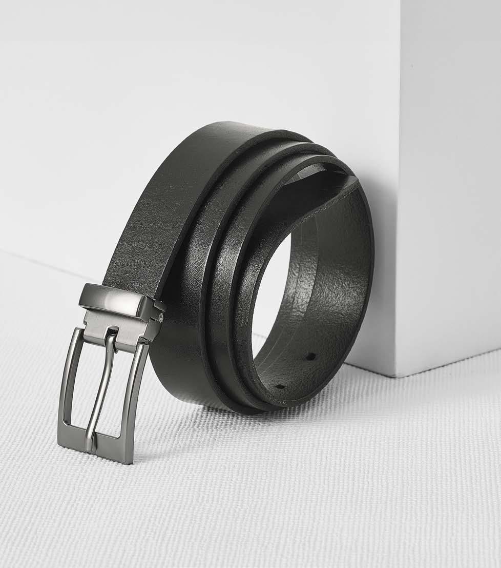 Mens Leather Belt Grained leather, with silver metal buckle fastening.