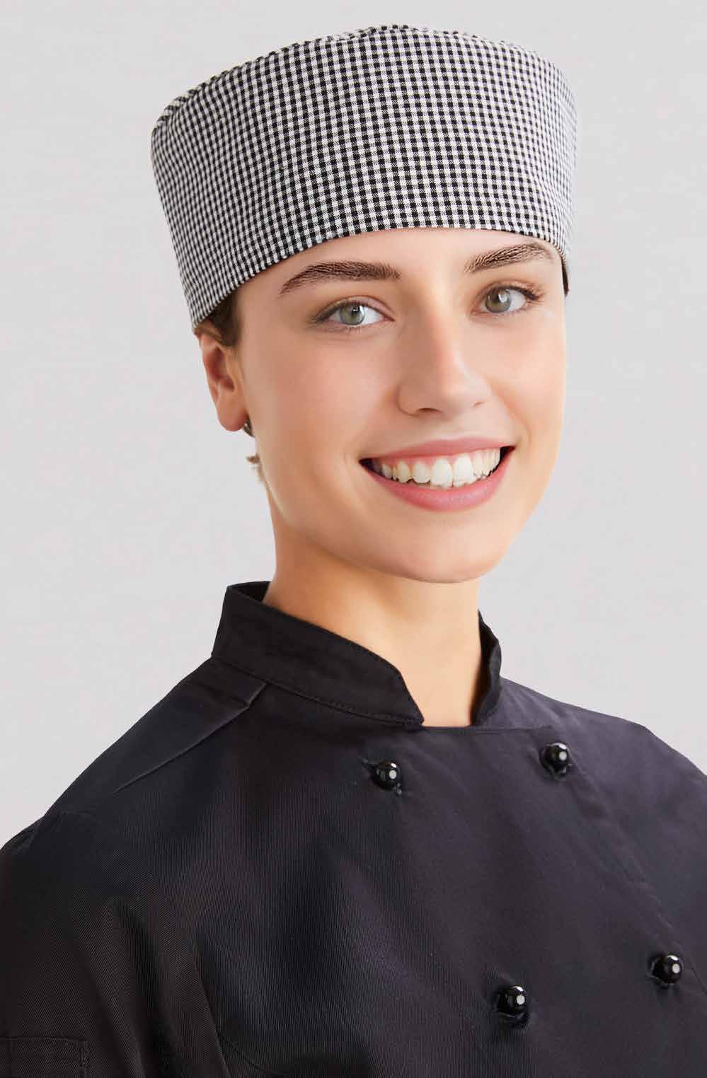FEATURES Elasticated back designed to stretch easily over bun/pony tail tied just below the crown of your head • Reversible cap, perfect for industrial laundering