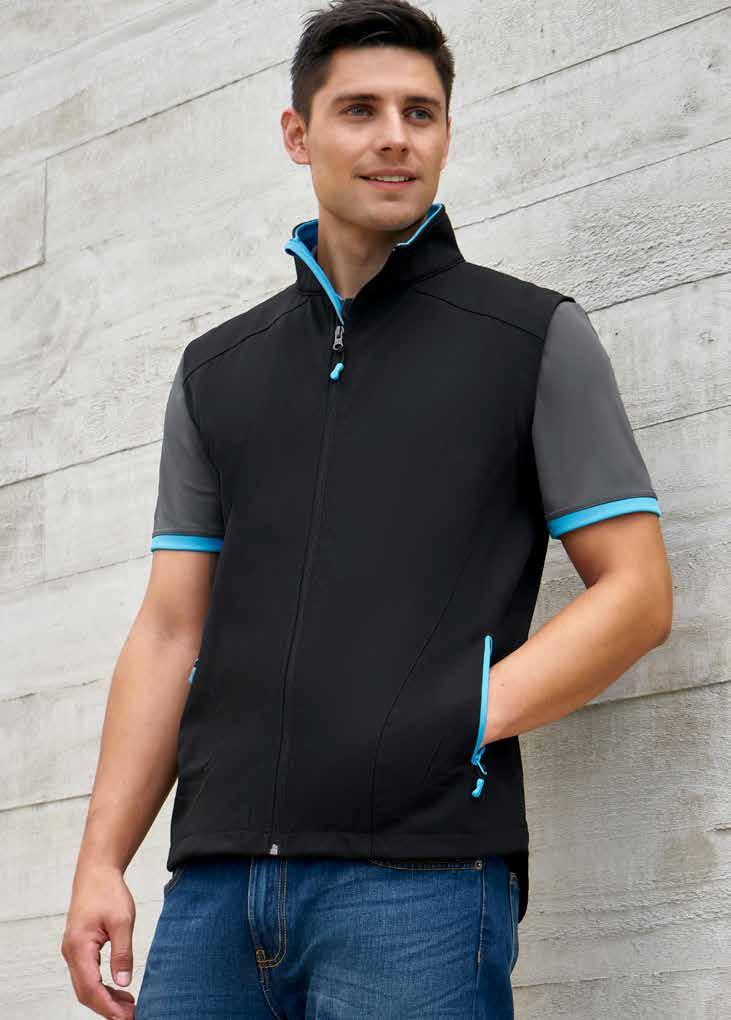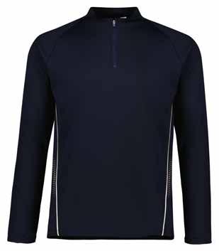 FEATURES Contrast shoulder panels and piping • Matching knitted collar • Back and underarm mesh panel inserts for breathability • Mens style includes loose pocket
