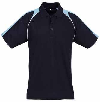 FEATURES Unisex fit • Soft, dry handle pique knit fabric • Knitted rib collar • Mesh contrast colour body and shoulder panels • Silver piping on body seams • Button through placket • Includes loose pocket