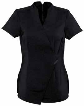 A classic crossover design with a Mandarin collar and clean lines for the stylish beauty professional.