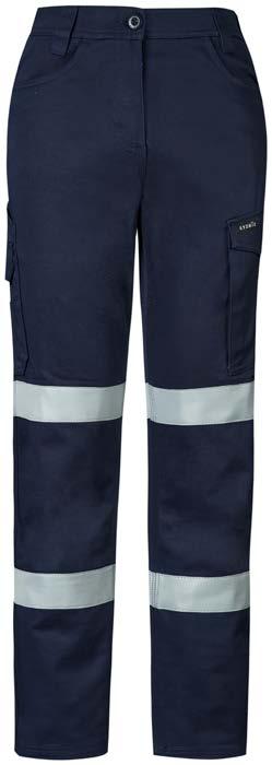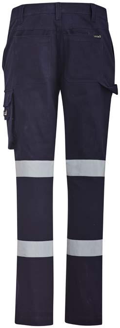 Lightweight cotton drill fabric provides durability and comfort One chest pocket with quick close tape fastening One chest pocket with vertical zipper for easy access Large cargo pocket on side leg with quick close tape fastening Triple stitching at crotch for extra durability Two side hip pockets Two side access pockets to reach your internal pant pockets One back hip pocket Garment complies with TTMC-W23 for the code of compliance requirement on New Zealand roads