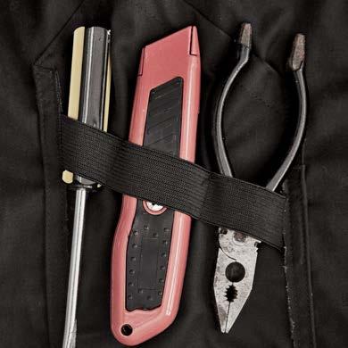 Six multi-functional pockets so you have a place for everything Mobile phone and ruler pocket Reinforced at all key stress points with bar tacks Plastic “D” hoop for ID or key ring Modern feminine fit