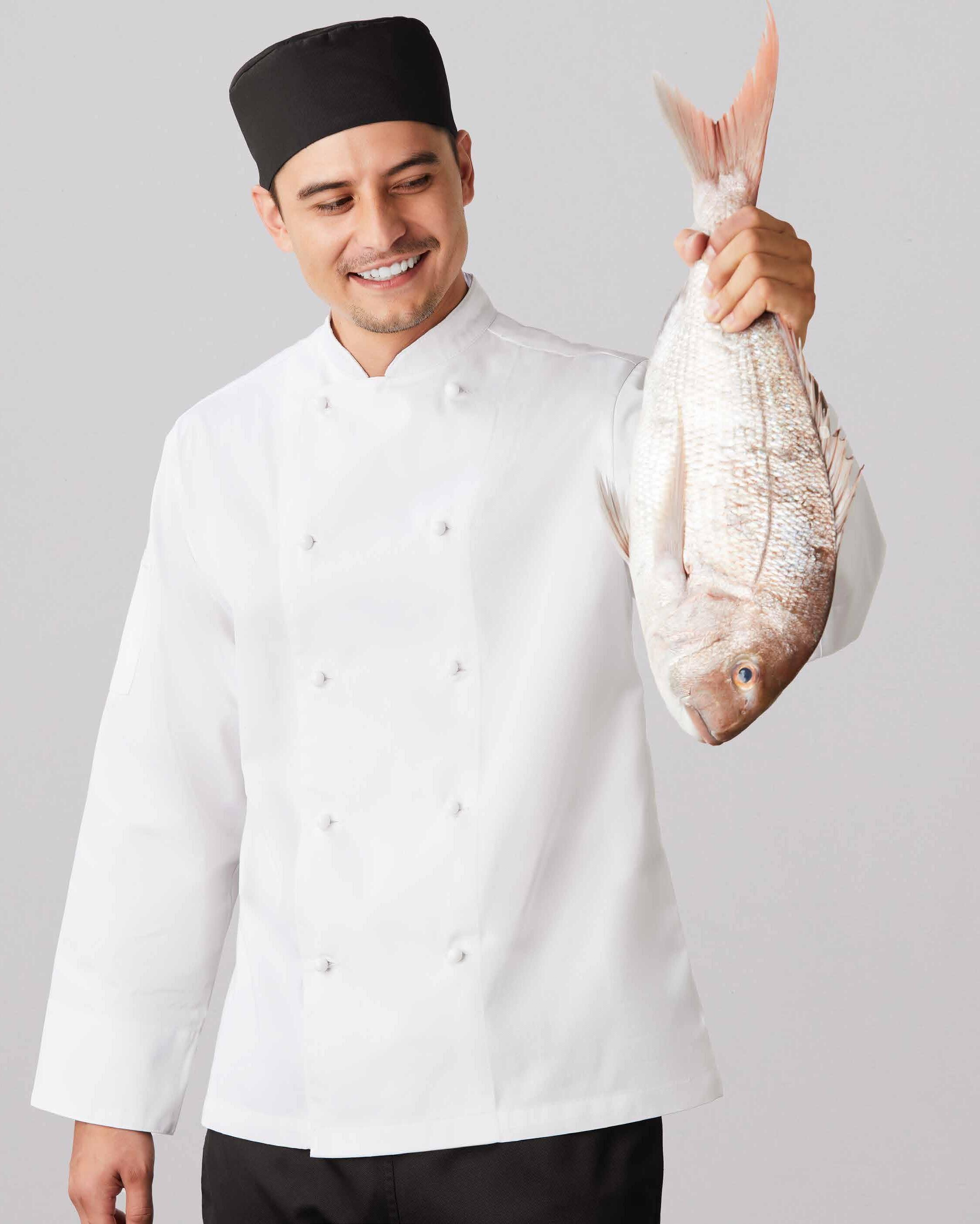 Not too heavy, not too light, a classic double-breasted, long sleeve chef jacket is the timeless choice for all culinary professionals.