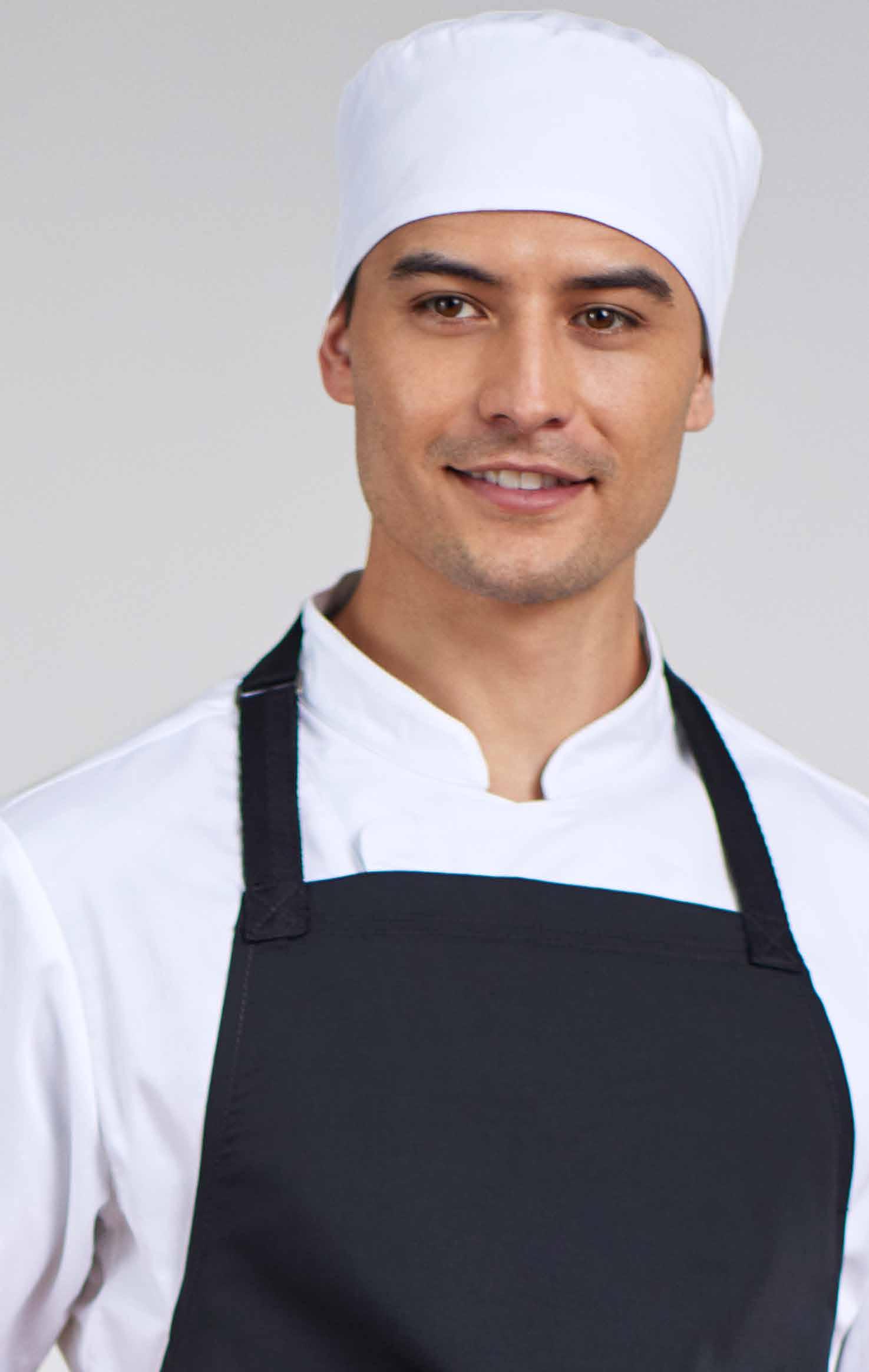 The go-to hat for many chefs. This classic flat top style has an elasticated back for a comfortable all day fit.