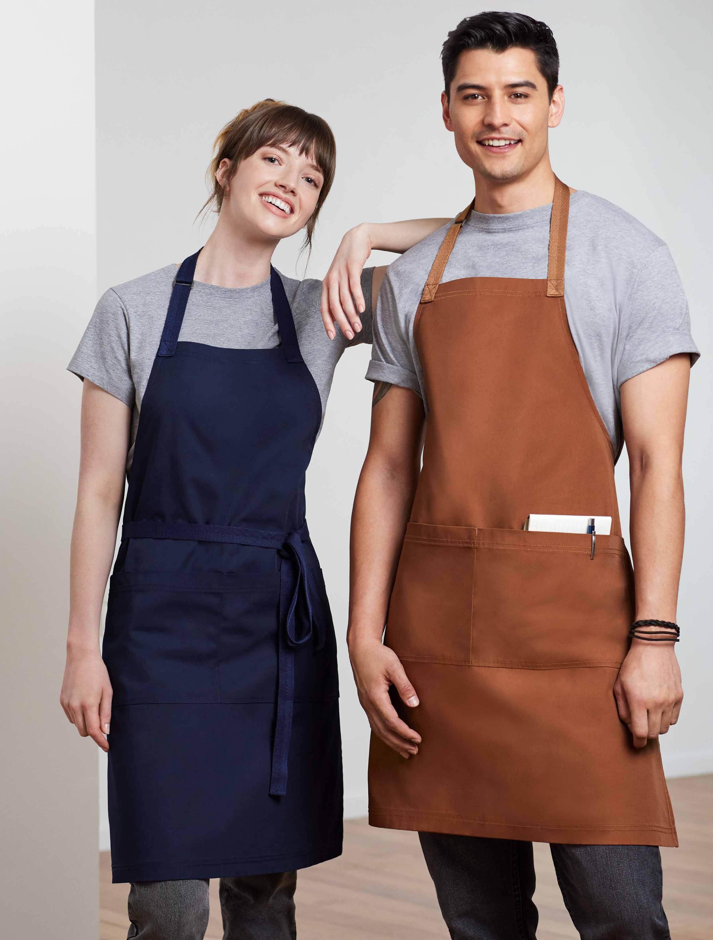 This classic bib style apron is as practical as it is good-looking. Choosing a vibrant bold colour is a great way to hallmark your business and make a recognisable statement.