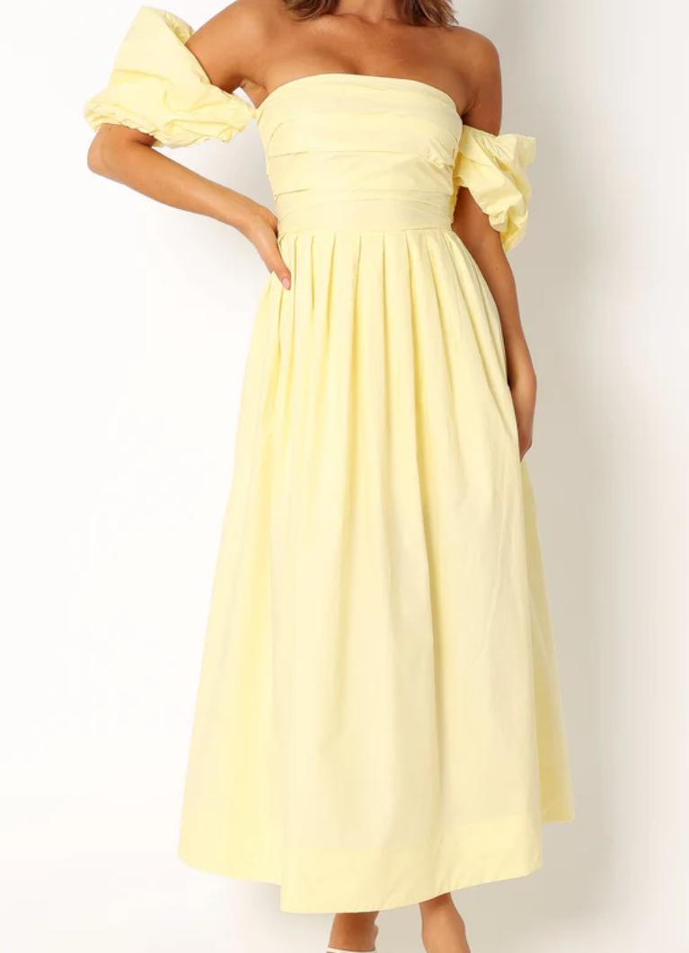 1.SOLANAOFFSHOULDERMIDIDRESSâYELLOW