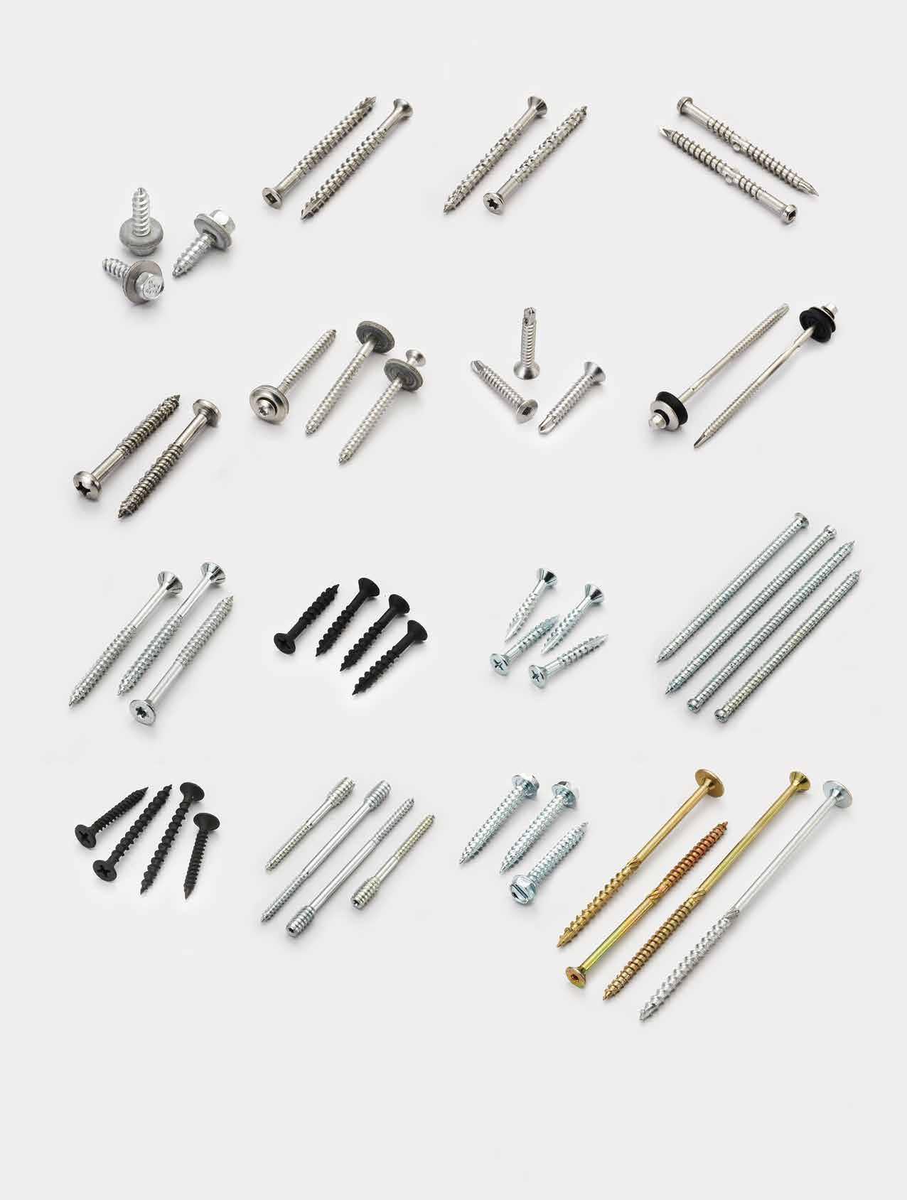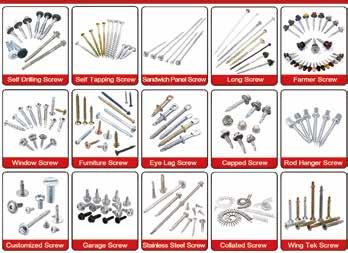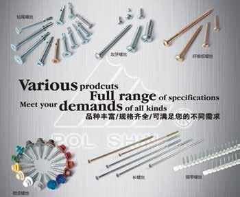 Construction Fasteners / All Kinds of Screws / Automotive Screws / Building Parts / Chipboard Screws / PT Screws / TEK Screws / Roofing Screws / Customized Special Screws & Bolts / Special Parts / CNC Machining Parts