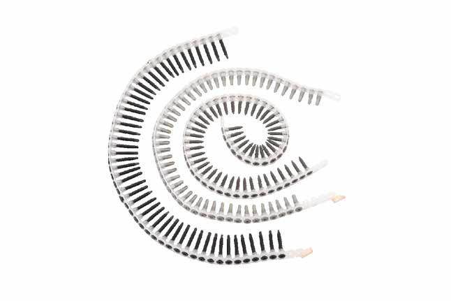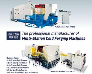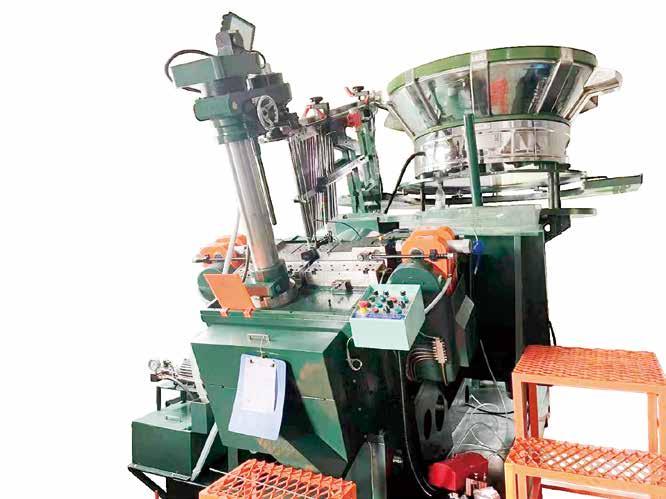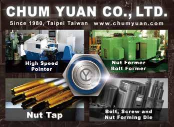 per minute. Besides standard models, custom machines are available, such as the PM-W250S tailored to client requests. The largest model can produce self-drilling screws up to 600 mm in length. Pointmaster’s R&D has yielded multiple patents; the use of different cast iron materials strengthens the machines’ rigidity and robustness, delivering a tonnage output about 1.25 times higher than competitors.