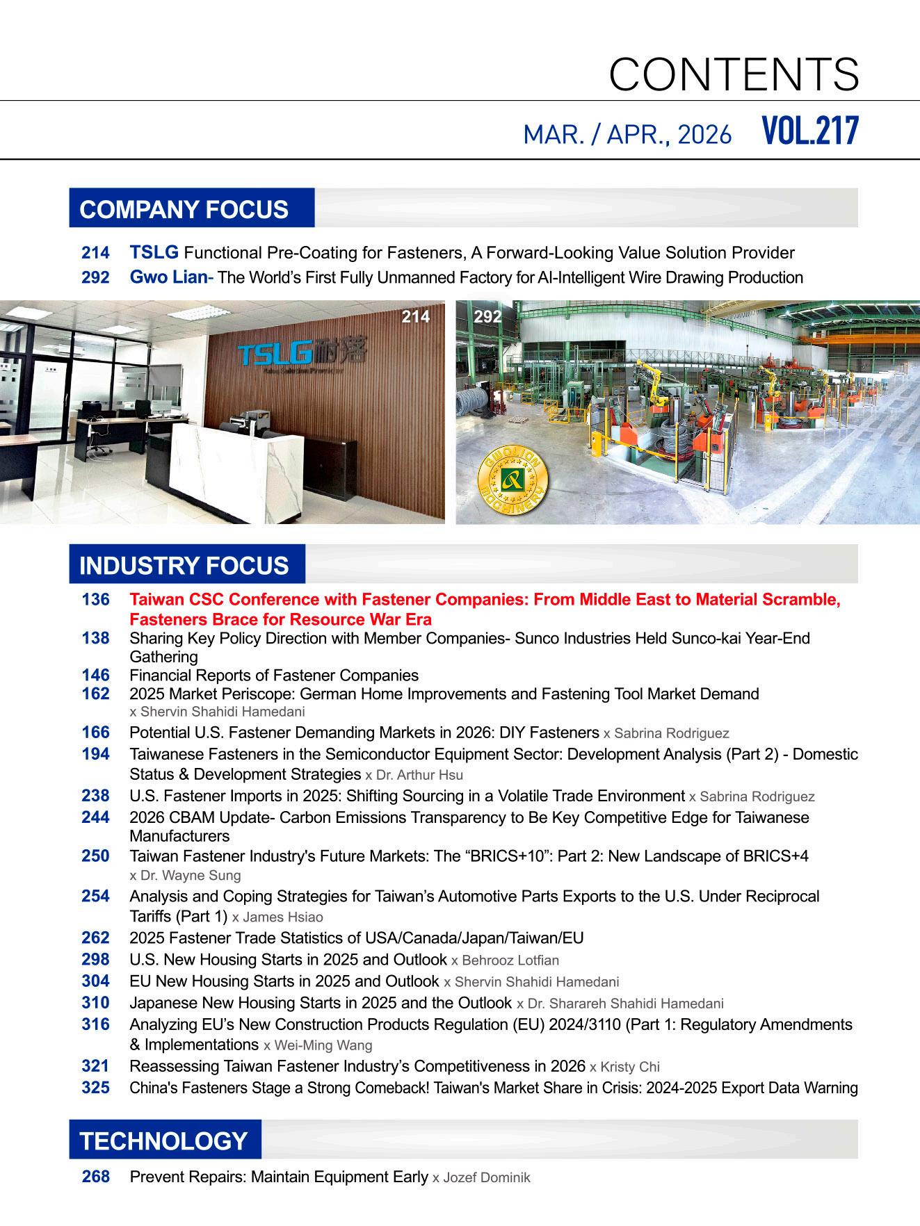reduction requirements from the EU CBAM, labor shortages in traditional industries fueled by the high-tech boom, and relentless lowprice competition from Chinese and emerging market rivals flooding global markets. These challenges have placed unprecedented survival pressure on Taiwan fastener industry, which once had a glorious era. Some industry players openly warn that if these issues remain unaddressed, the much-touted “golden decade” of future growth will only grow increasingly distant for Taiwan fastener industry.