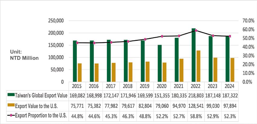 1. Taiwan's exports to all five major continents showed a downward trend.