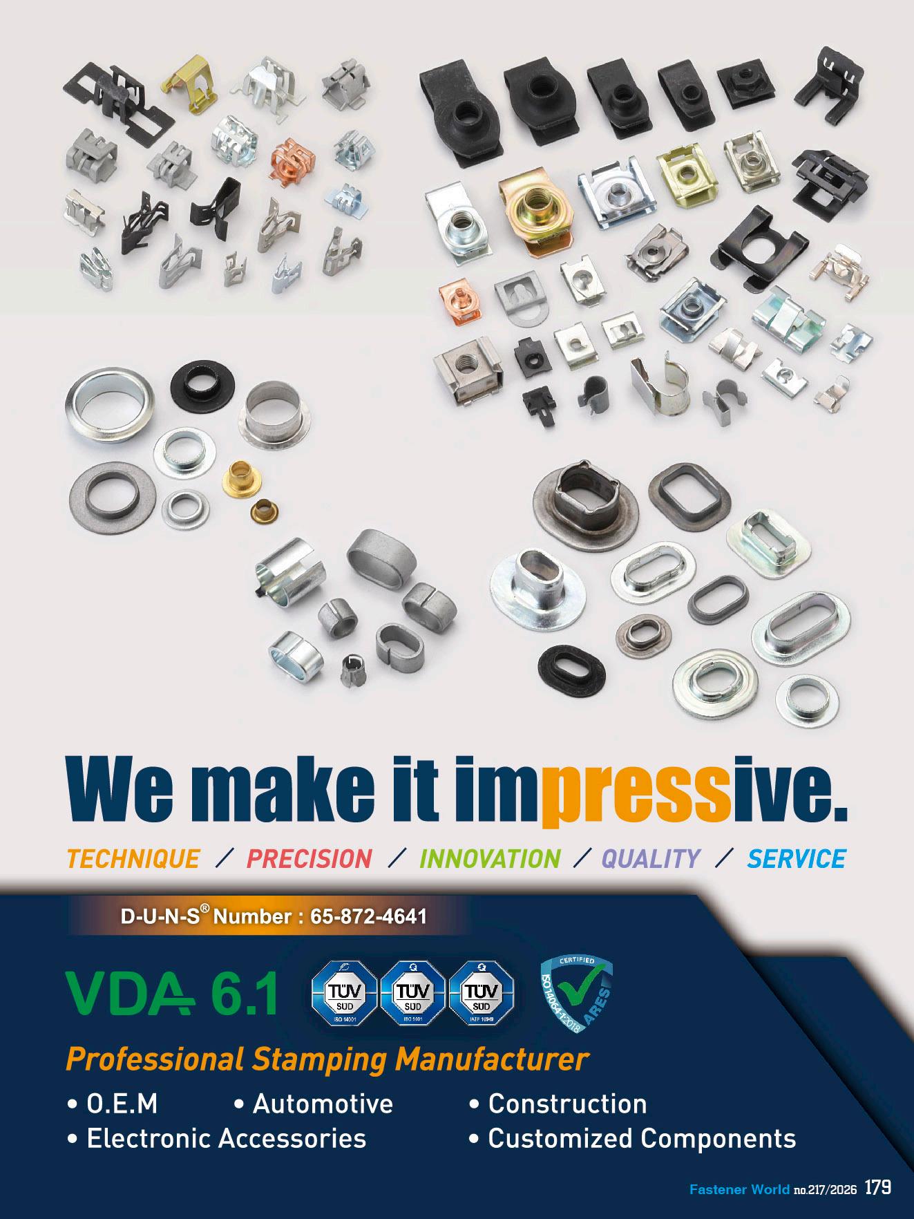 Taiwan's fastener strategy for 2026 should center on "Becoming a highly reliable guardian": First, fortify mid-to-high-end markets in auto, machinery, engineering, and specialty applications to minimize price competition. Second, address the lack of end-market pull by proactively linking to EV, aerospace, semiconductor equipment, and energy engineering scenarios— becoming a solution partner rather than just a fastener and part supplier. In essence, 2026 isn't about chasing volume; it's about proving Taiwan can upgrade from high-quality maker to trusted key supply chain ally.