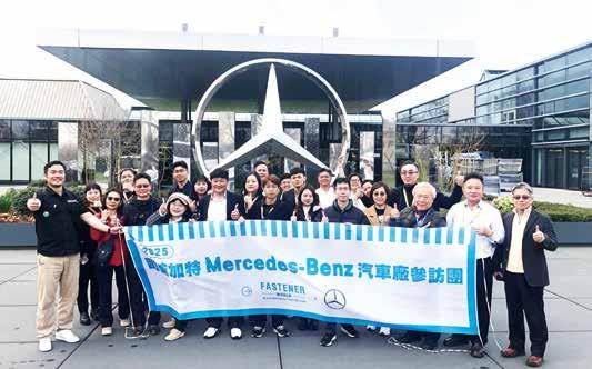 On March 25, 2025, Fastener World and dozens of Taiwanese fastener enterprises’ reps toured MercedesBenz’s plant in Sindelfingen, Germany, the largest plant of Mercedes-Benz in the world. The plant spans over 318,000 square meters and primarily produces high-end models of Mercedes-Benz (e.g., Maybach, S-Class, and E-Class).