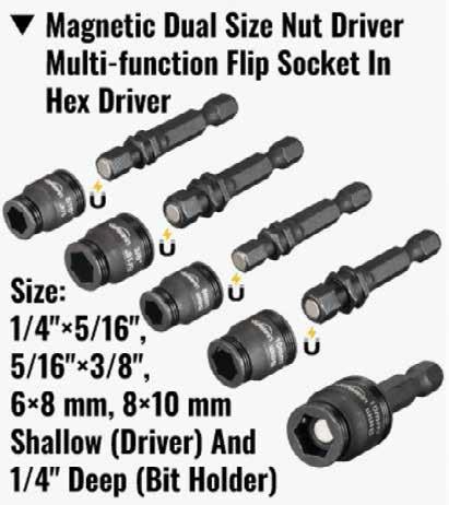• Included Nut Drivers: 1/4", 5/16", 3/8"