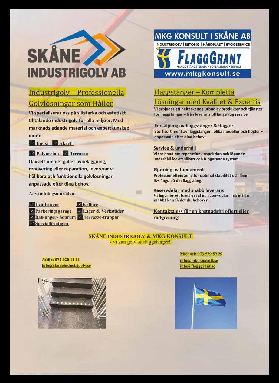 Hunneberga Bygg Trädgård/fastighetsskötsel, snickeri 31 MKG Konsult i Skåne AB Industrigolv, flaggstänger 32