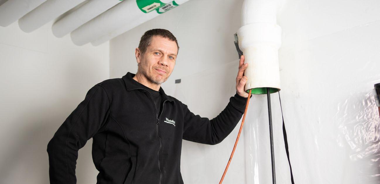Lucas Söderholm är en av fyra delägare i företaget Foam King från Trelleborg som specialiserat sig på tekniken med sprayisolering. Tidigare användes det främst vid tillverkning av kylskåp och innehöll då flera hälsovådliga ämnen. Idag är de förbjudna och ämnet polyuretan som används vid sprayisolering innehåller inga miljöfarliga ämnen.