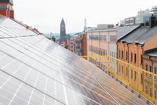 Med solpaneler på taket minskas elkostnaderna och gör fastigheten till en effektiv energiproducent.