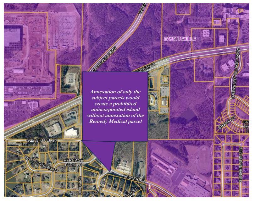 1. Annexation of the subject parcels are contingent on the abutting Remedy Medical annexation request being approved as to not create an unincorporated island.
