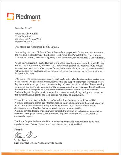 On December 11, 2025 the Fayette County Board of Commissioners voted 4-0 to object to the annexation request.