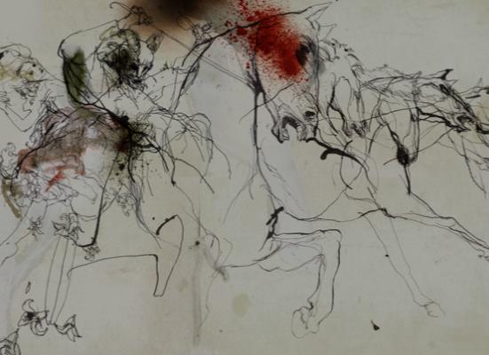 The mix of scribbles, crosshatching, and distressed textures creates depth and movement, making the logo feel dynamic rather than flat
