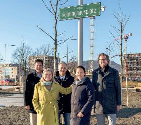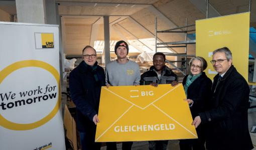 Maximilian Pammer (BIG), Lehrlinge Kevin Fladerer und Benjamin Akrasi, Dekanin Andrea Steiner und Rektor Peter Riedler