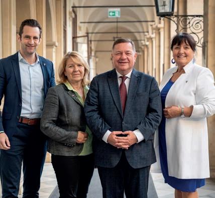 Nachhaltigkeit im Fokus Sechs Hörsäle und acht Seminarräume bieten künftig Platz für insgesamt 1.000 Studierende. Zwei neue Aufzüge garantieren die Barrierefreiheit des gesamten Gebäudes. Besonders freut sich Dekanin Andrea Steiner über die ökologische Ausrichtung des Projekts: „Dass die Neugestaltung historische Bausubstanz mit ökologischer Adaptie -