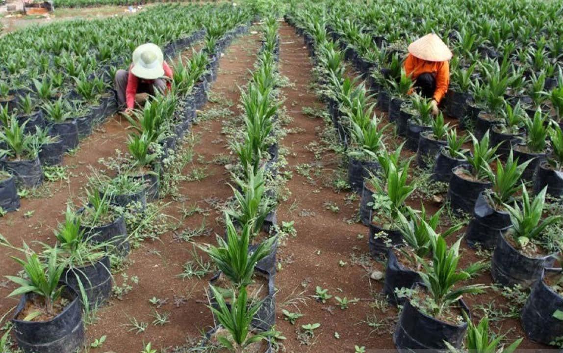 File - Workers are seen at an oil palm nursery in Padang, West Sumatra, on February 26, 2021. ANTARA FOTO/Muhammad Arif Pribadi/ Lmo/hp/pri