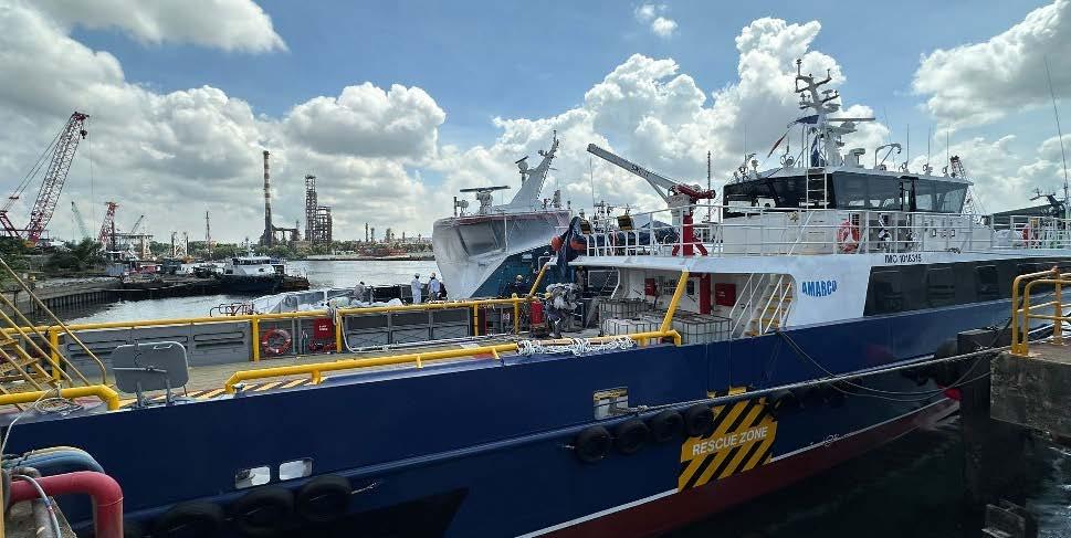 The Amarco S1 includes an external firefighting system (FIFI) and an oil dispersant system, increasing its ability to respond to emergencies such as oil spills and fires, while the bow thruster and auto-trimming interceptors help increase its maneuverability, offering greater control during complex offshore operations.