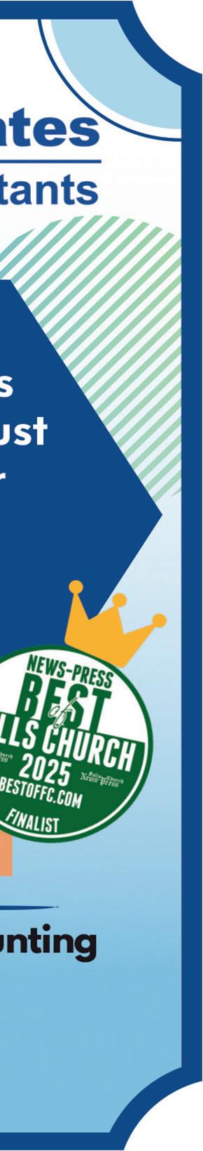 The News-Press is certified by the Commonwealth of Virginia to publish official legal notices including probate, abc notices, small and foreign estates. We will provide the appropriate paperwork. A comprehensive book on the 36 year history of the News-Press, “The Life and Times of the Falls Church NewsPress”: by Charlie Clark (History Press, 2023), can be purchased at local bookstores or online. The Falls Church News-Press is published weekly on Thursdays and is distributed free of charge throughout the City of Falls Church and the Greater Falls Church area to over 140 locations. Offices are at 105 N. Virginia Ave., #310, Falls Church, VA 22046. Reproduction of this publication in whole or part is prohibited except with the written permission of the publisher. ©2025 Benton Communications Inc. The News-Press is printed on recycled paper. A searchable archive of all issues of the Falls Church News-Press since 1991 can be found at bit.ly/44kt6Sc.
